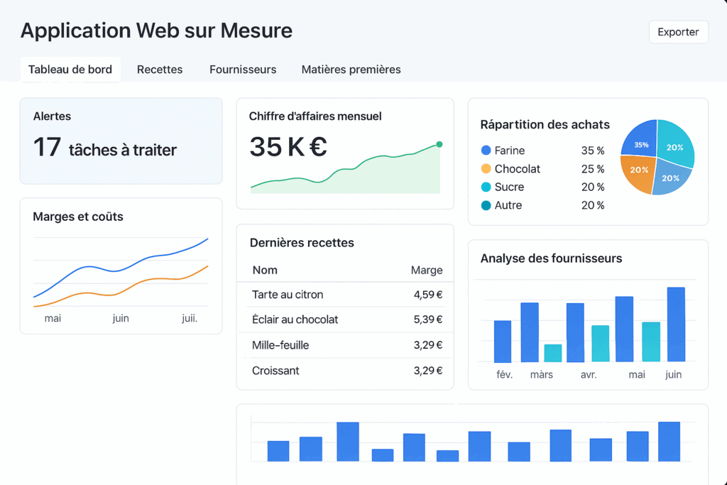Gagnez du temps, centralisez vos outils et simplifiez votre gestion avec une application web sur mesure conçue pour les besoins réels de votre entreprise.