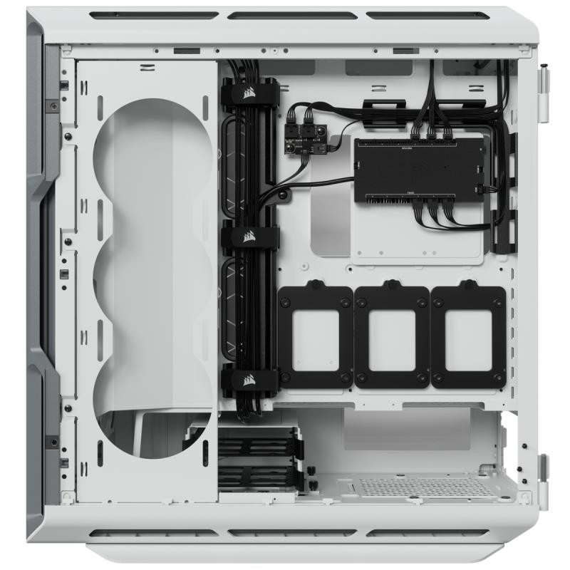 Le Corsair iCUE 5000T RGB Mid Tower Blanc prend en charge différents formats de cartes mères et offre un espace généreux pour installer des composants de grande taille.