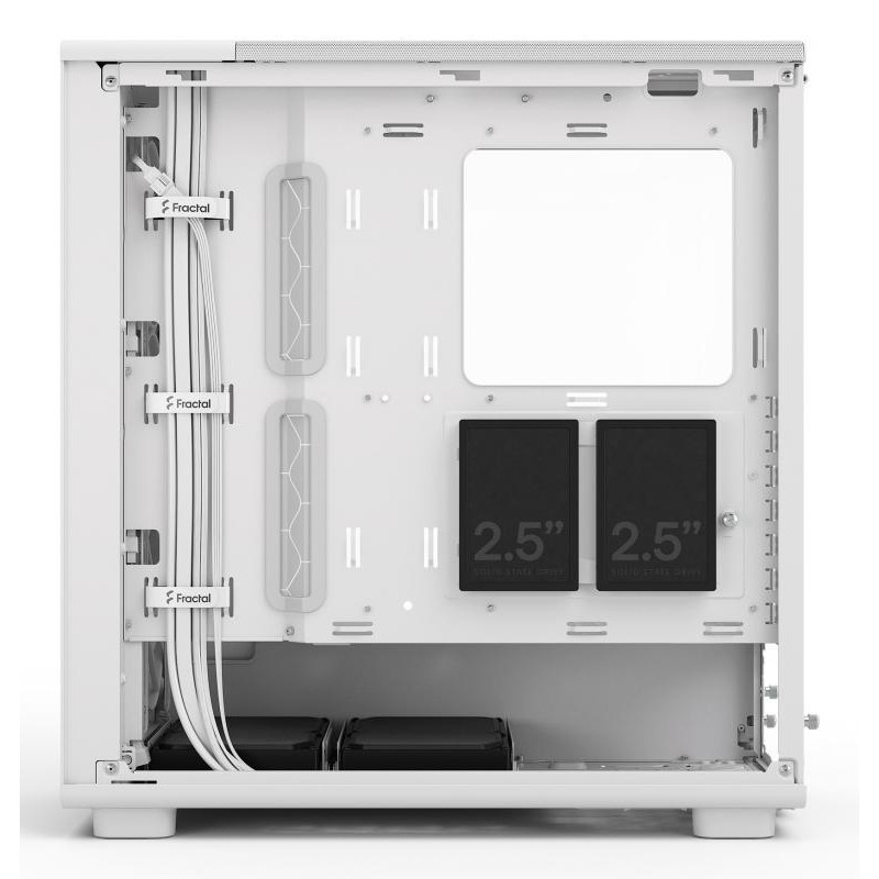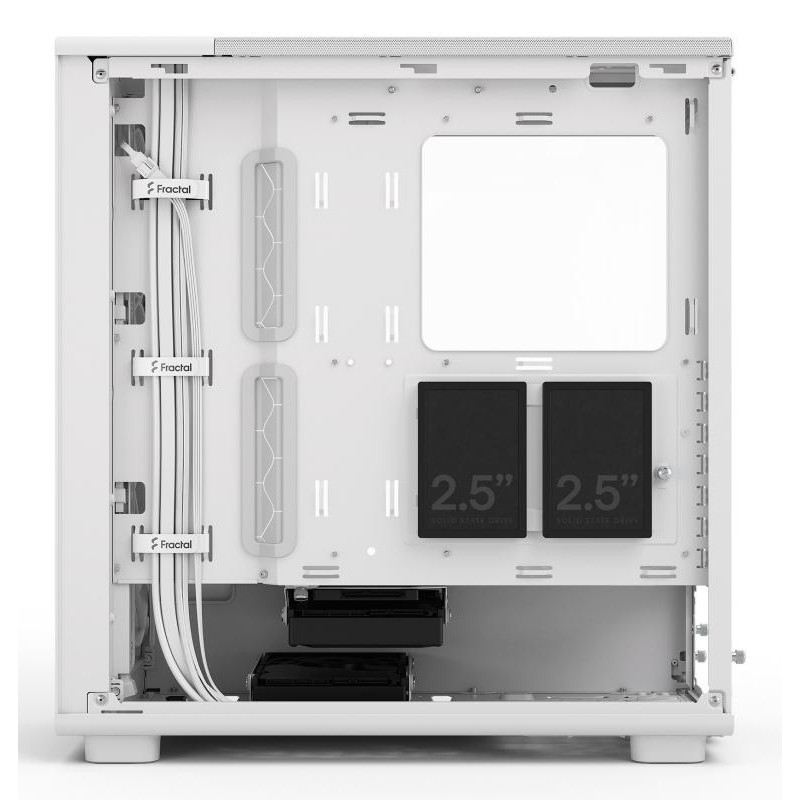 Le FRACTAL Epoch Blanc TG Clear tint propose une ventilation efficace avec trois ventilateurs avant de 120 mm préinstallés. Il est possible d’ajouter jusqu’à deux ventilateurs en haut et un à l’arrière, avec des diamètres de 120 ou 140 mm selon les emplacements. Les filtres anti-poussière intégrés contribuent à maintenir un intérieur propre.