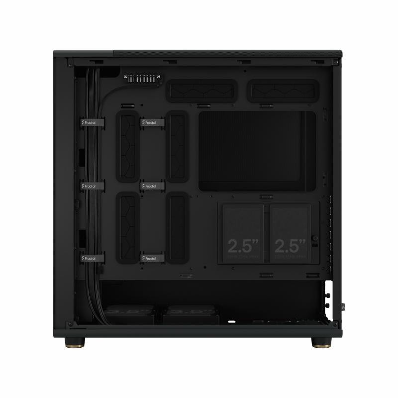 Le FRACTAL North XL Charcoal Noir dispose de deux ports USB 3.2 Gen 1 Type-A et d’un port USB 3.2 Gen 2 Type-C en façade. Un bouton Marche/Arrêt est facilement accessible. Ce modèle ne possède pas de vitre latérale, ce qui favorise une structure robuste et discrète. Il est équipé de filtres anti-poussière pour protéger les composants internes.