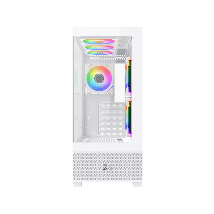 Le Xigmatek Alphard RGB (Blanc) est conçu pour accueillir des configurations variées tout en offrant un design moderne. Sa structure blanche, associée à des panneaux en verre trempé, permet une vue panoramique sur les composants internes et met en valeur l’éclairage ARGB intégré.