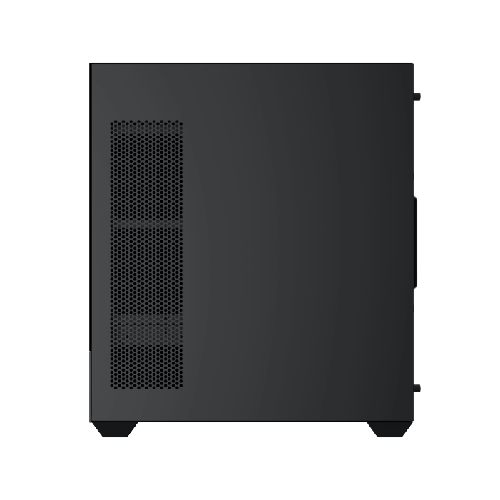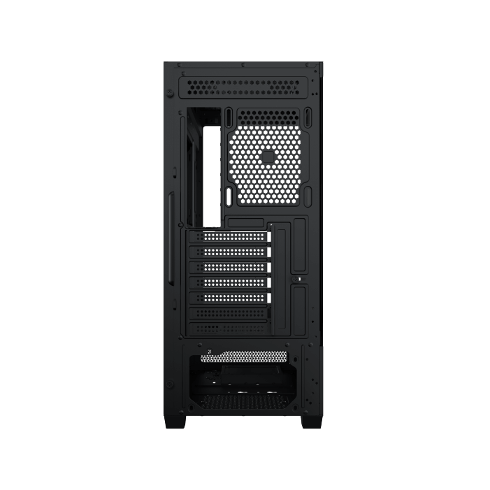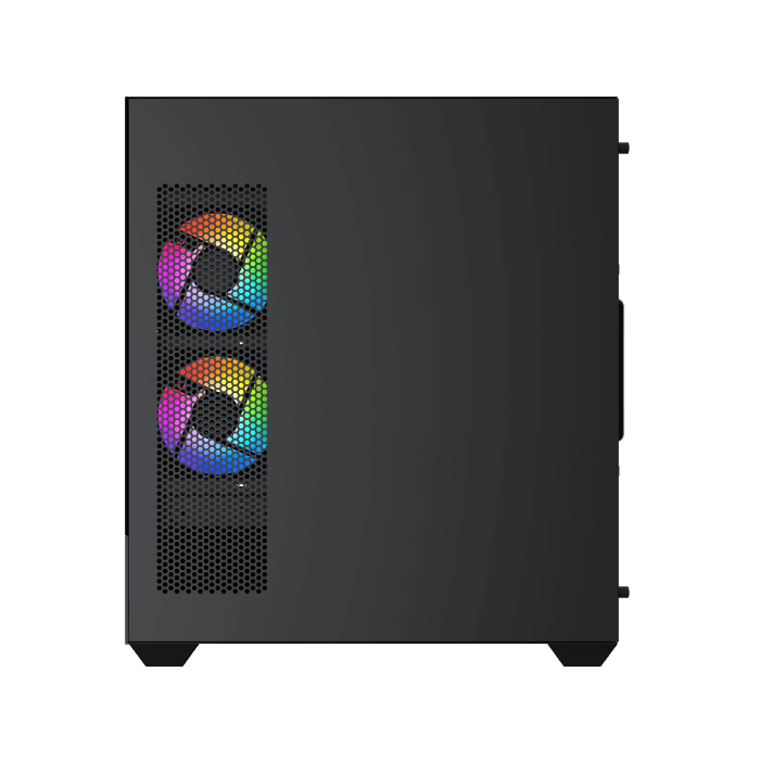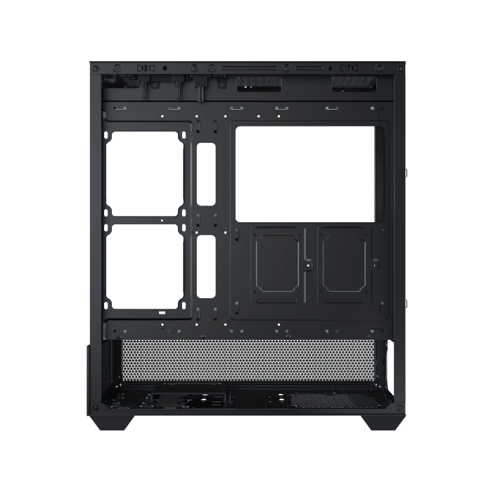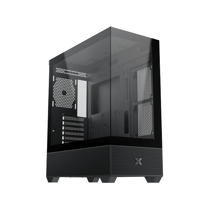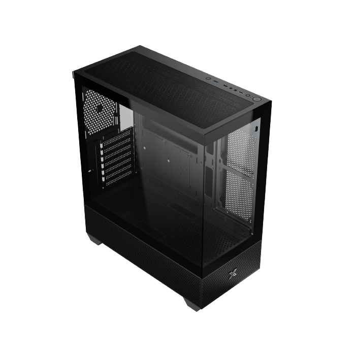 Ce boîtier se distingue par sa vue panoramique de type aquarium, grâce à un panneau latéral en verre trempé. L’association d’acier, de mesh, de plastique et de verre trempé garantit robustesse et esthétique. Son coloris noir s’intègre facilement dans différents environnements.
