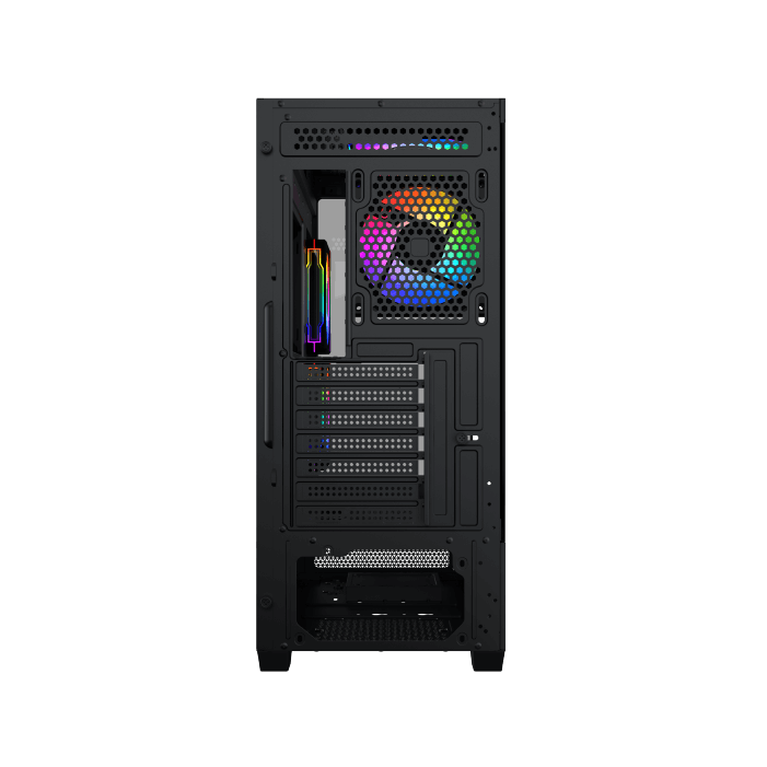 Le Xigmatek Alphard RGB (Noir) offre un espace généreux, permettant l’installation de cartes graphiques jusqu’à 41 cm de longueur et de ventirads jusqu’à 16,5 cm de hauteur. Il dispose d’un emplacement 3,5″ et d’un emplacement 2,5″ pour le stockage.