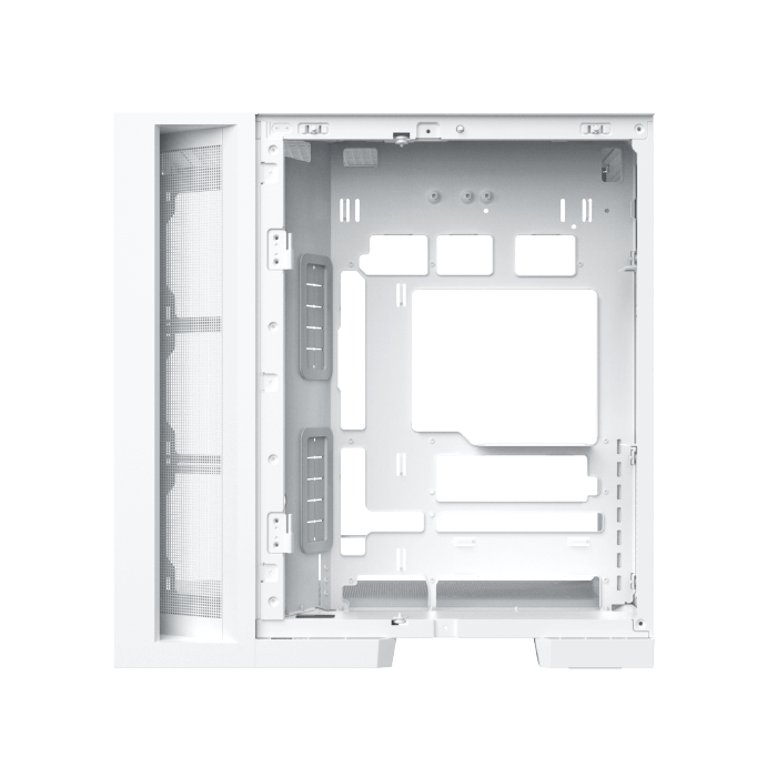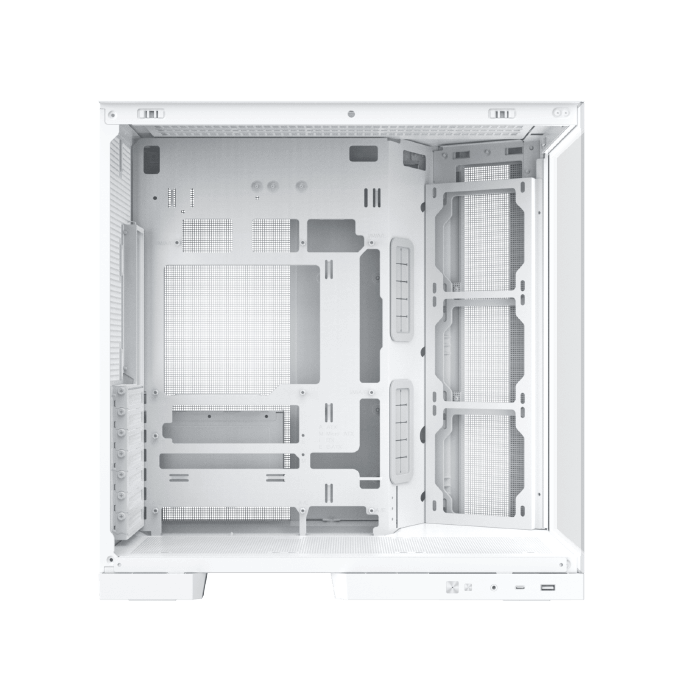 Le design du boîtier favorise une bonne circulation de l’air. Plusieurs emplacements sont prévus pour installer des ventilateurs ou un système de refroidissement liquide, ce qui contribue à maintenir des températures stables pour les composants. Les panneaux vitrés sont conçus pour ne pas gêner la ventilation, assurant ainsi un équilibre entre esthétique et performance thermique.