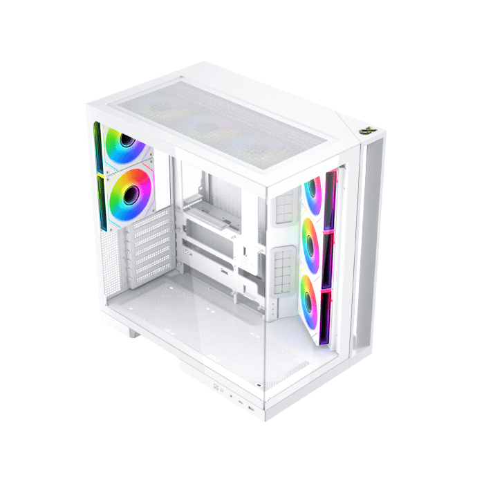 L’intégration de l’éclairage RGB dans le Xigmatek Aqua 7 RGB (Blanc) permet de personnaliser l’apparence du PC. Les effets lumineux peuvent être adaptés en fonction des préférences, grâce à un contrôleur dédié ou à la compatibilité avec les cartes mères prenant en charge la gestion RGB. L’éclairage met en valeur l’intérieur du boîtier, sans compromettre la sobriété de l’ensemble.