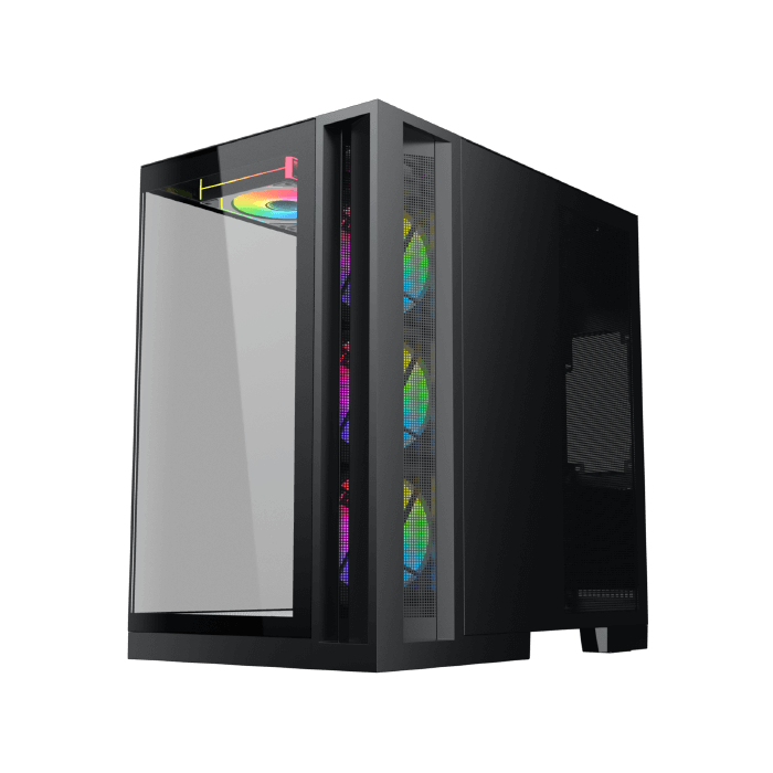 Ce boîtier est adapté à l’intégration de plusieurs ventilateurs et de systèmes de watercooling, ce qui permet de maintenir des températures optimales même lors d’une utilisation intensive. Le rétroéclairage RGB apporte une touche personnalisable à l’ensemble, pour un rendu visuel moderne et harmonieux.