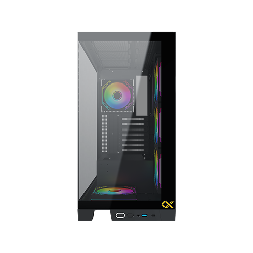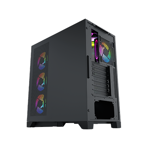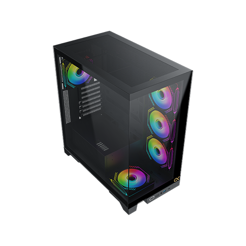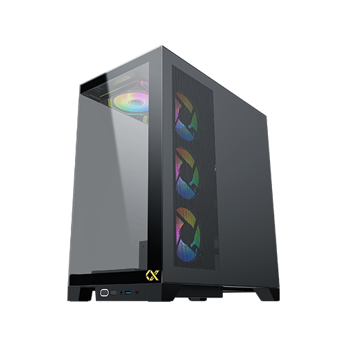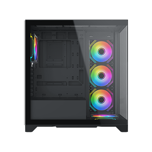 Ce modèle se distingue par ses panneaux en verre trempé, offrant une vue panoramique sur l’intérieur du boîtier. La structure principale associe acier, plastique et verre trempé pour garantir robustesse et durabilité. L’éclairage ARGB (RGB adressable) intégré permet de personnaliser l’ambiance visuelle, avec un contrôleur de gestion LED RGB fourni.