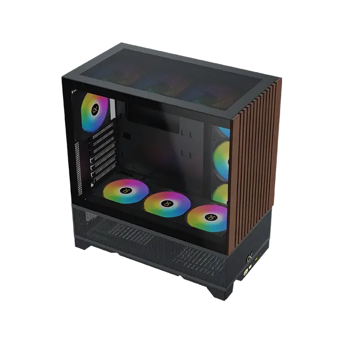 Le Xigmatek Endorphin WD (Noir) propose une conception unique associant acier, bois, mesh, plastique et verre trempé. Ce choix de matériaux offre une esthétique originale et une robustesse adaptée aux configurations avancées.