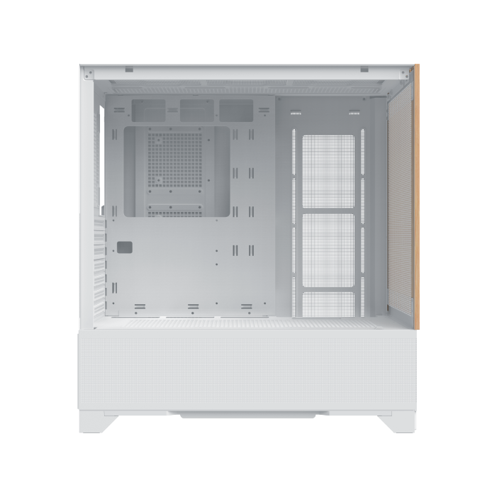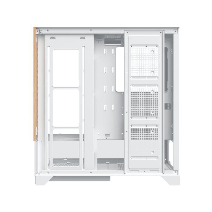 Le boîtier prend en charge les formats Micro-ATX, ATX, Mini-ITX et E-ATX, ce qui permet d’installer une large gamme de cartes mères. Il dispose de deux emplacements 3,5″ et deux emplacements 2,5″ pour disques durs et SSD, répondant ainsi aux besoins de stockage courants.