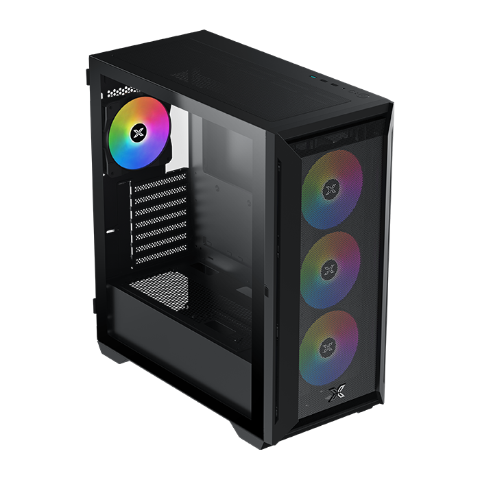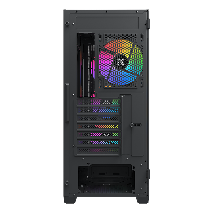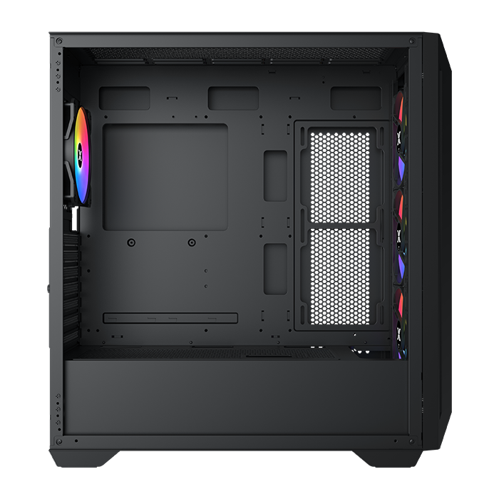 Ce boîtier intègre quatre ventilateurs de 120 mm et offre jusqu’à neuf emplacements pour ventilateurs. Il prend en charge les systèmes de watercooling avec radiateur de 360 mm, garantissant une gestion thermique efficace même pour les composants les plus puissants.