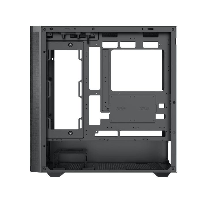 Le boîtier combine un panneau vitré en verre trempé, du mesh, du métal et du plastique pour offrir robustesse et esthétique. Le design Back-connect facilite la gestion des câbles, améliorant la circulation de l’air et l’apparence intérieure.