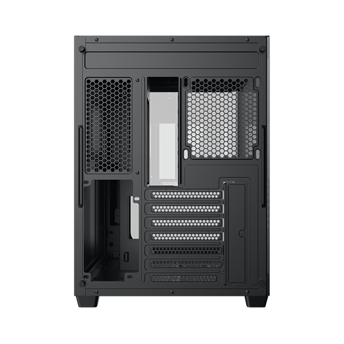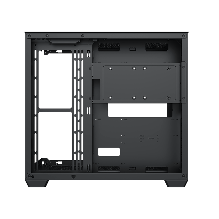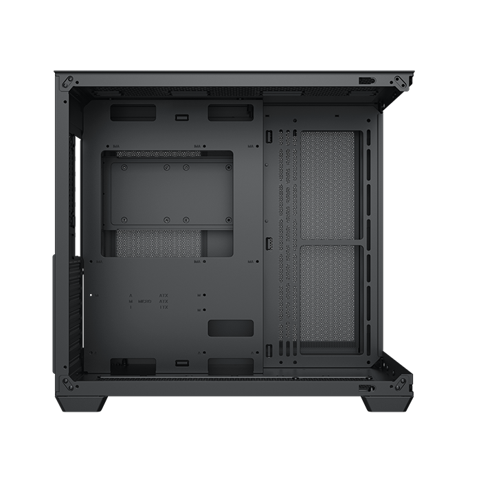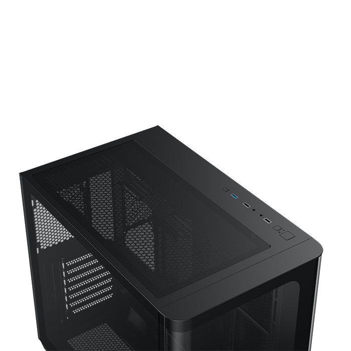 Le boîtier adopte une ouverture latérale façon aquarium, offrant une vue dégagée sur les composants internes. Les matériaux utilisés, tels que l’acier, le plastique et le verre trempé, garantissent robustesse et durabilité. La finition noire s’accorde facilement avec différents styles de bureaux ou d’espaces gaming.