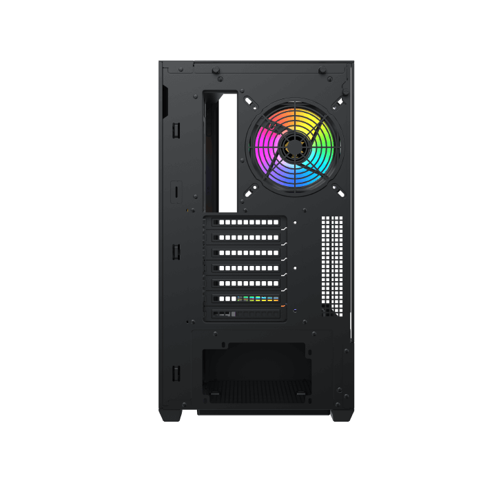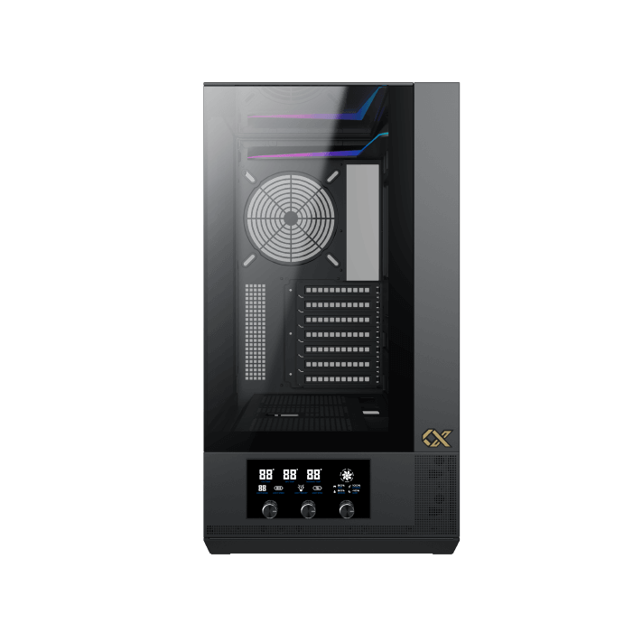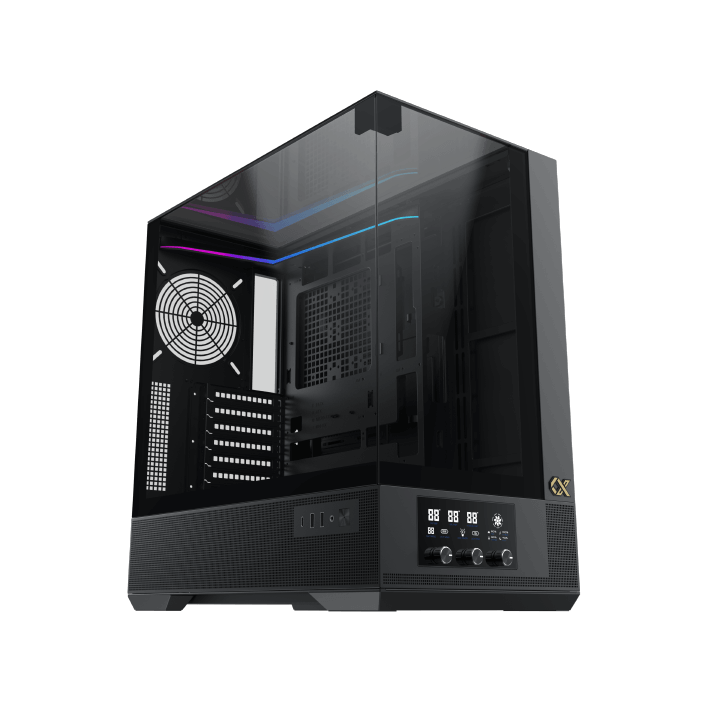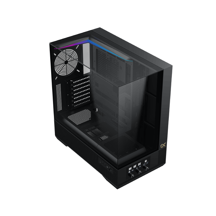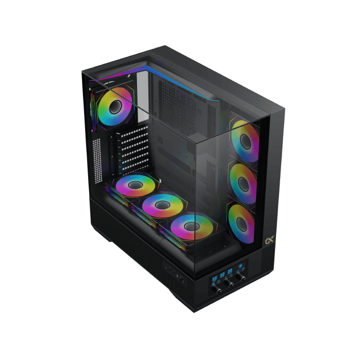 Le système de rétroéclairage ARGB permet de personnaliser l’apparence du boîtier, tandis que la gestion avancée du refroidissement assure une température maîtrisée pour tous les composants.