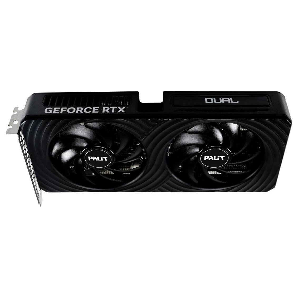 La Palit GeForce RTX 5060 Dual utilise l’interface PCI-Express 5.0 x16, assurant une connexion rapide avec la carte mère. Elle dispose d’une prise PCIe 5.x à 12+4 broches, et un adaptateur PCIe 8 broches vers PCIe 5.x est inclus pour faciliter l’installation sur différents systèmes. Un support pour carte graphique accompagne également le produit pour garantir une stabilité optimale dans le boîtier.
