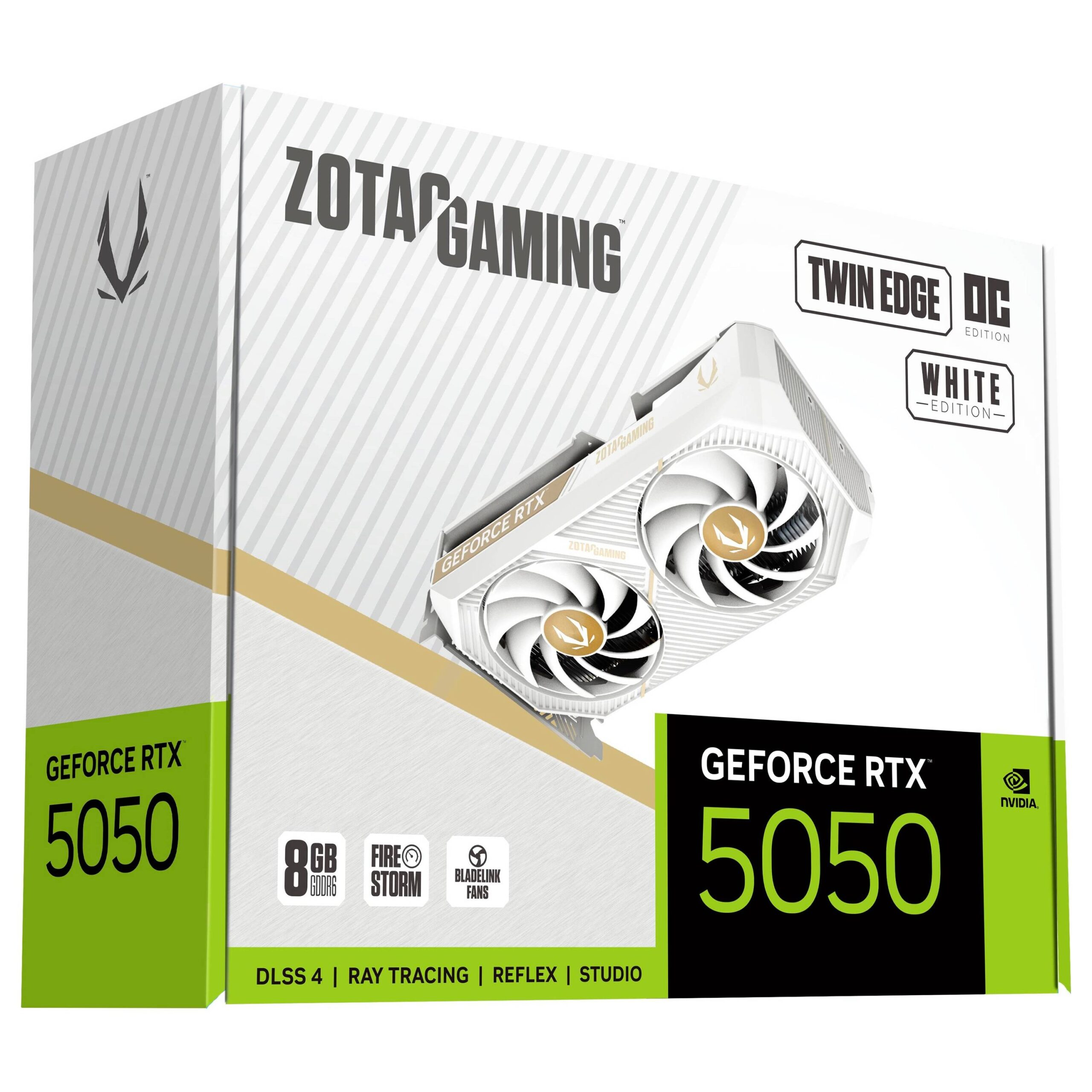La Zotac Gaming GeForce RTX 5050 Twin Edge OC White prend en charge jusqu’à quatre écrans simultanément. Elle permet d’atteindre une résolution maximale de 8K Ultra HD, ce qui la rend adaptée aux tâches graphiques avancées et aux jeux exigeants. Grâce à la mémoire GDDR6 de 8 Go et à la norme PCI-Express 5.0, les transferts de données sont rapides et stables.