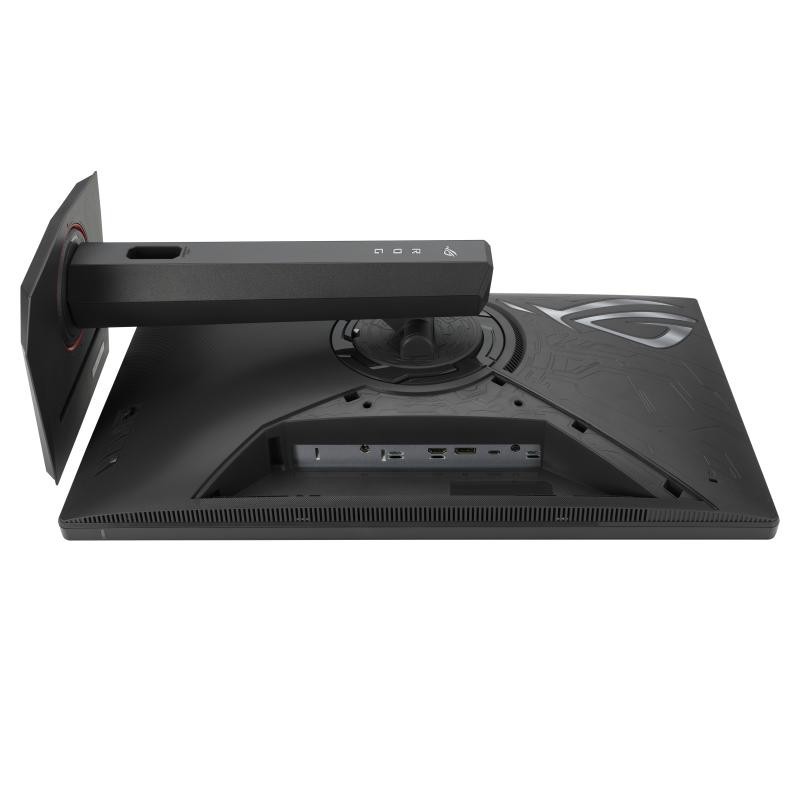 L’ASUS XG27ACMG propose un support réglable en hauteur (jusqu’à 12 cm), une inclinaison de -5 à 20°, un pivot à 90°, ainsi qu’une rotation horizontale de -45 à 45°. Le montage VESA 100×100 mm permet une installation murale ou sur bras articulé. Le support est détachable pour s’adapter à différents espaces de travail.