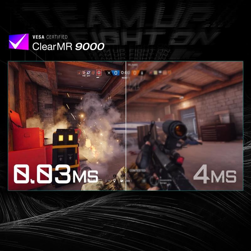 Le GIGABYTE MO27Q2 – EK propose un taux de rafraîchissement de 240 Hz et un temps de réponse ultra-rapide de 0,03 ms (GTG), ce qui réduit significativement les effets de flou lors des mouvements rapides. La technologie DisplayHDR 400 True Black garantit une gestion avancée des contrastes, avec un taux de contraste natif de 1500:1. L’écran couvre 99% de la palette DCI-P3 et affiche plus d’un milliard de couleurs, ce qui assure une grande fidélité colorimétrique.