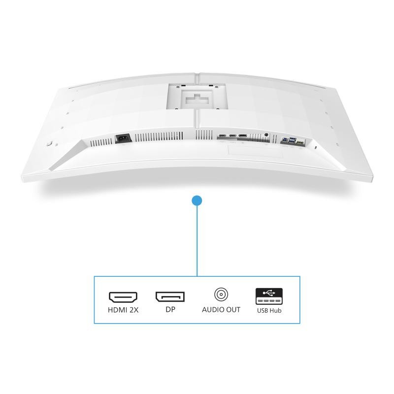 La courbure de 1500R enveloppe le champ de vision pour une expérience immersive. La dalle Fast VA propose un taux de contraste élevé (4000:1) et une luminosité typique de 300 cd/m². Le taux de rafraîchissement de 180 Hz et le temps de réponse de 1 ms (GTG) garantissent une image fluide, adaptée aux jeux rapides.