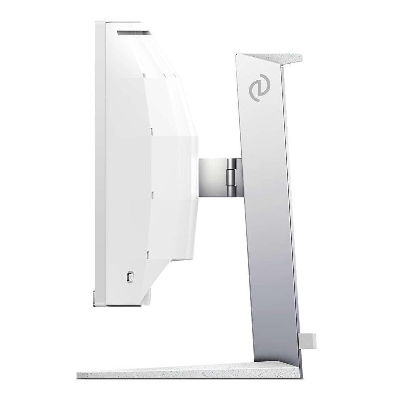Le moniteur présente une courbure 1800R pour une immersion accrue. Le support permet un réglage en hauteur jusqu’à 15 cm, une inclinaison de -5 à 20° et une rotation de -20 à 20°. Le verrou Kensington assure la sécurité dans les environnements partagés.
