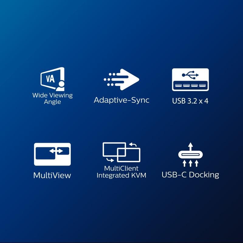 L’affichage multilingue à l’écran (OSD) est disponible en plusieurs langues, et des fonctionnalités telles que SmartImage, EasyRead et le capteur de lumière ambiante optimisent l’expérience utilisateur. Un port antivol Kensington assure la sécurité du poste de travail.