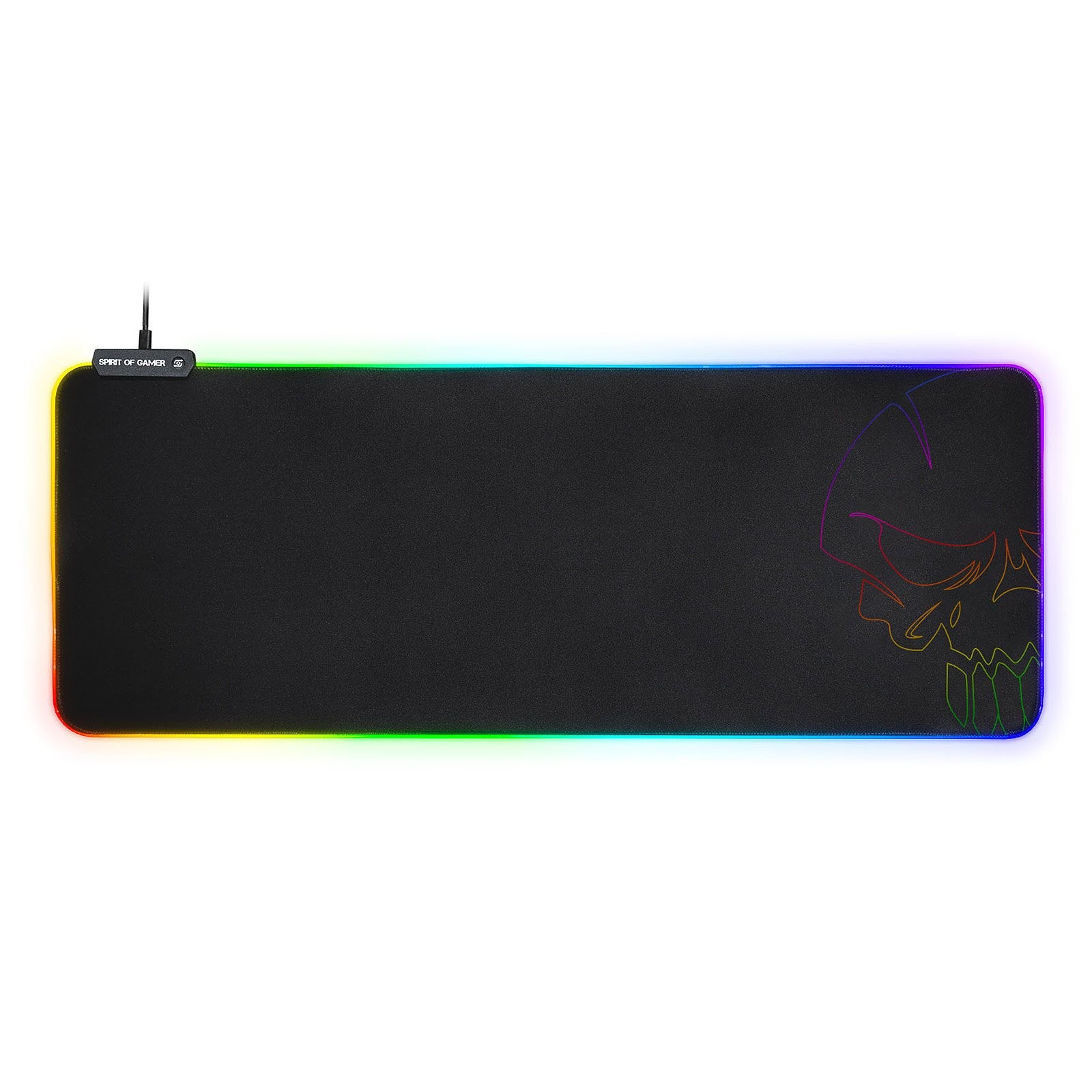Le Skull RGB Gaming Taille XXL est un tapis de souris destiné aux joueurs recherchant une surface étendue et des effets lumineux personnalisables. Avec ses dimensions de 800 mm de largeur et 300 mm de profondeur, il accueille facilement clavier et souris pour une expérience de jeu immersive.