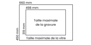La taille maximale de la vitre acceptée est de 660× 450 mm.